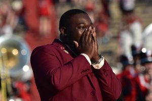 Nicholls 2024 Homecoming King Lance Jones smiles after being handed his sceptor